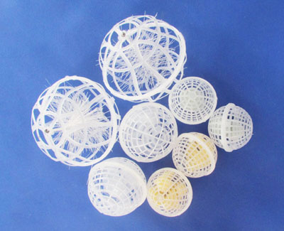 球形懸浮填料, 又稱孔旋轉(zhuǎn)球形懸浮填料 ,是對國內(nèi)處理污水、生物膜法處理技術(shù)采用的多種填料中開發(fā)的新系列產(chǎn)品。分內(nèi)外雙層球體,外部為網(wǎng)狀球體,內(nèi)部為旋轉(zhuǎn)球體。