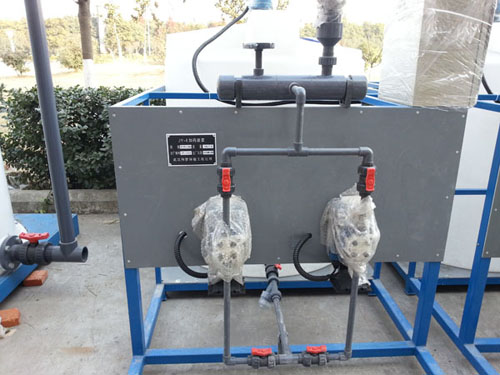 在水處理工程中加藥箱主要用于各種藥劑的攪拌、溶解、儲(chǔ)存,再通過計(jì)量泵或水射器將藥液投加到各投加點(diǎn)。 加藥箱外形分為方形和圓形,材質(zhì)為聚乙烯(PE),通過滾塑技術(shù)一次成型,上部預(yù)設(shè)了計(jì)量泵及攪拌機(jī)的安裝位置,攪拌機(jī)、加藥箱、計(jì)量泵三合一,使用非常方便。